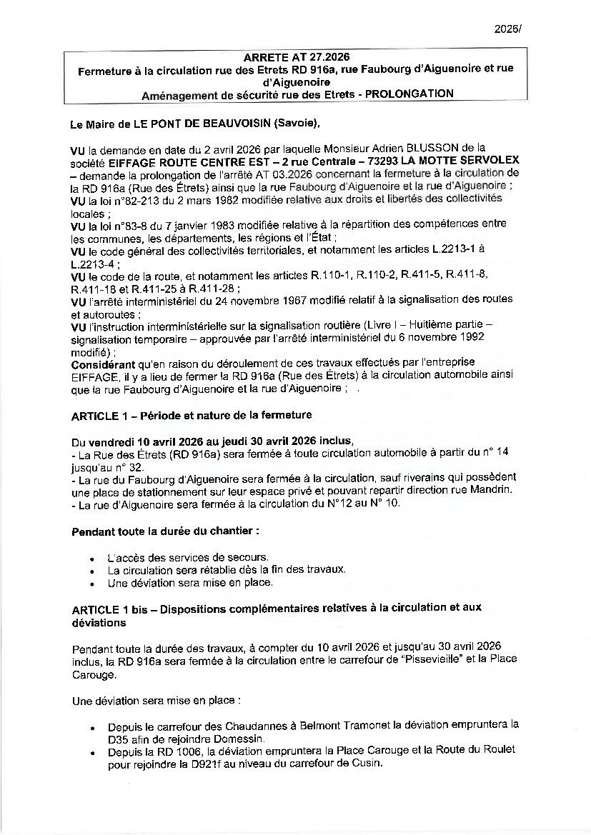 Déviation - route barrée rue Etrets Pont-de-Beauvoisin