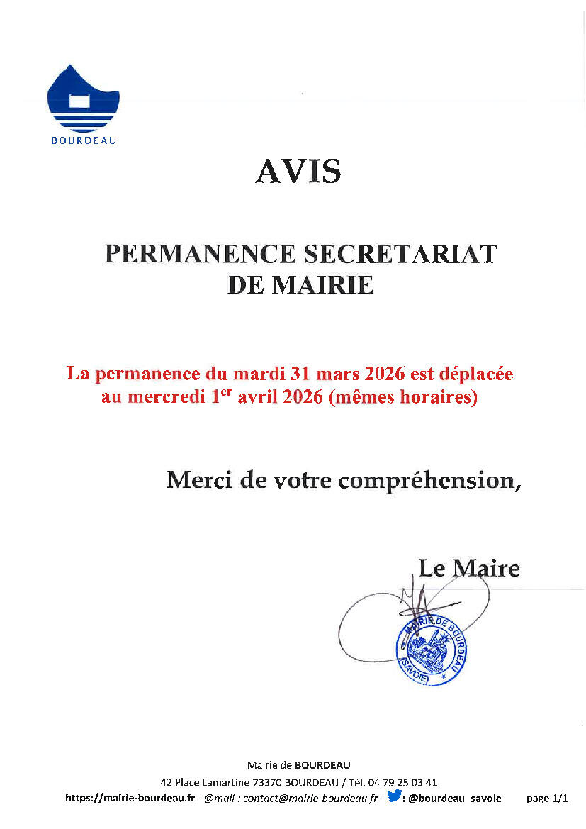 Changement de l'accueil du public en mairie le 31 mars 2026