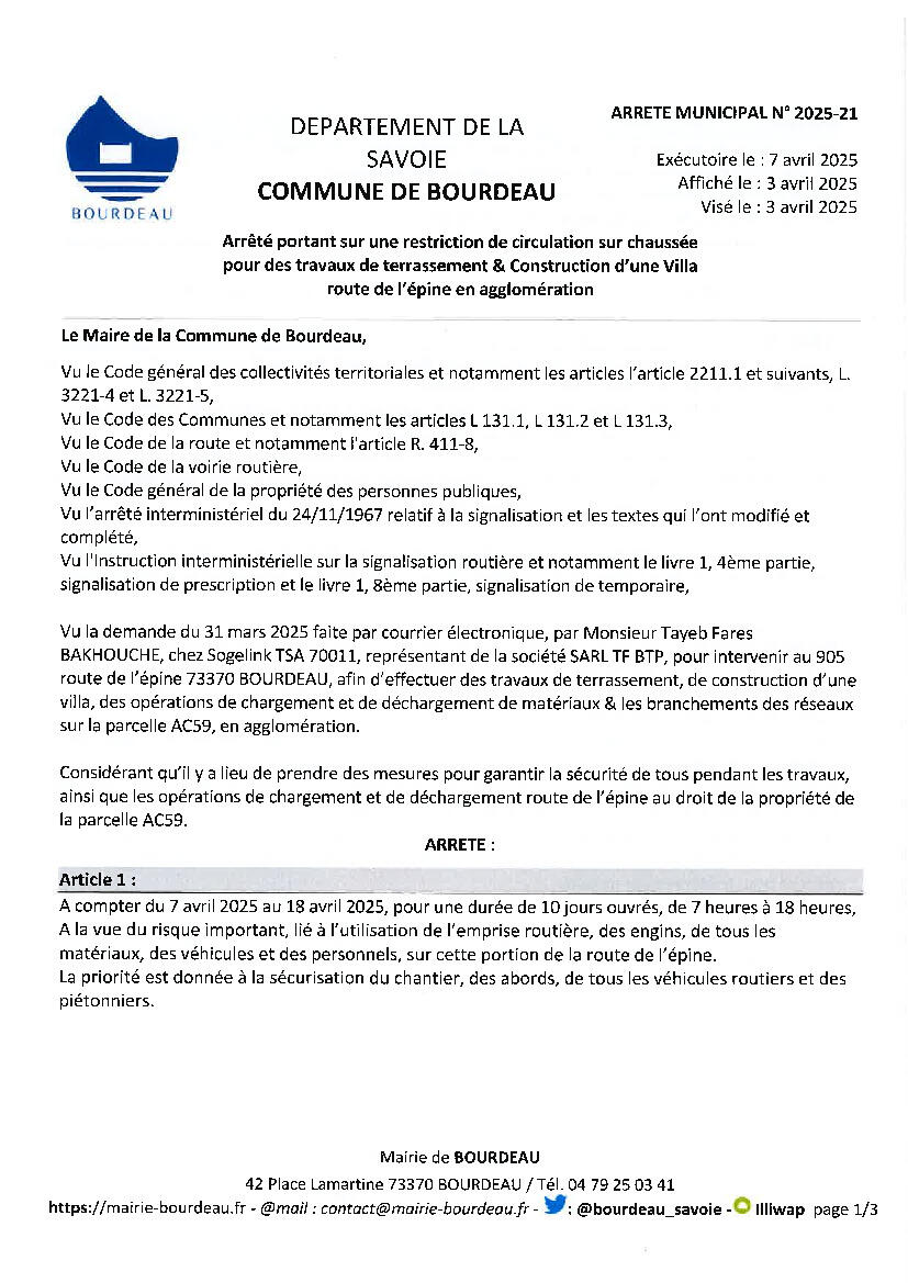Des panneaux de déviation seront mis en place par le représentant de la société SARL TF BTP ou ses représentants, entre les portions, amont & aval des travaux.