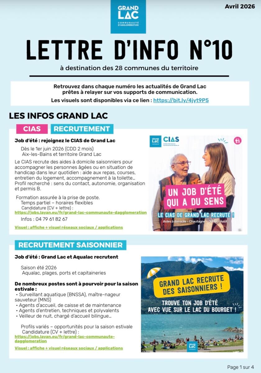 Veuillez trouver la lettre de Grand Lac d’avril en pièce jointe.