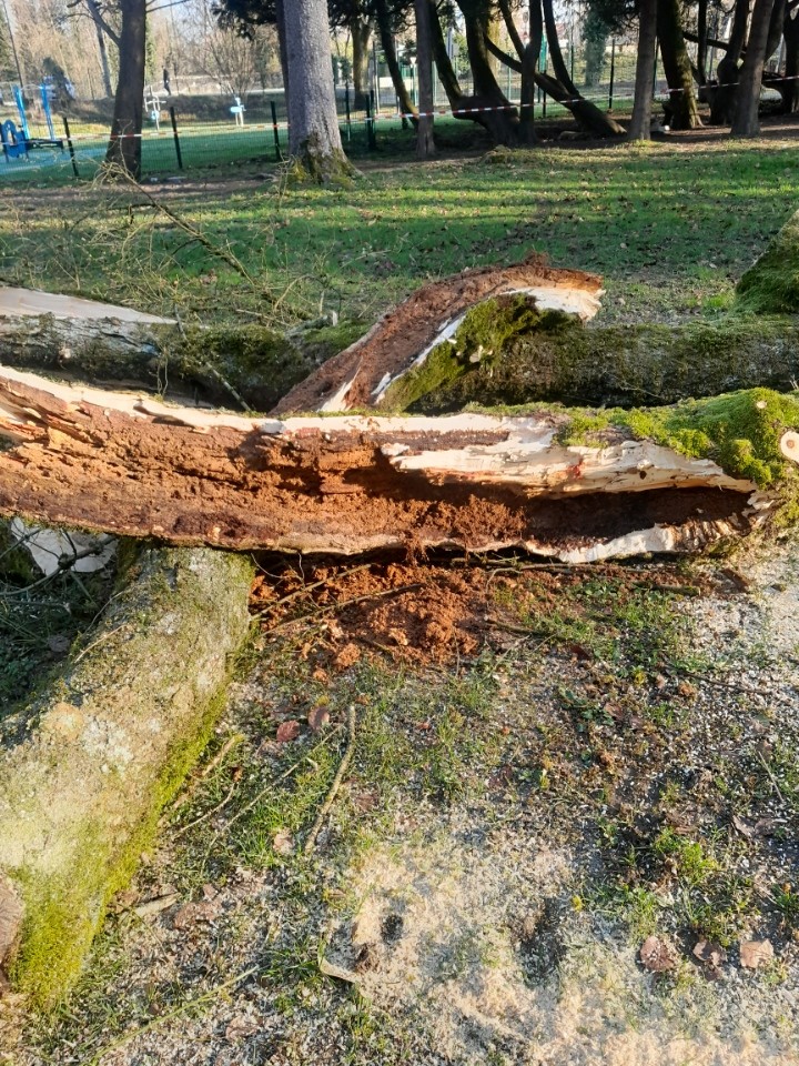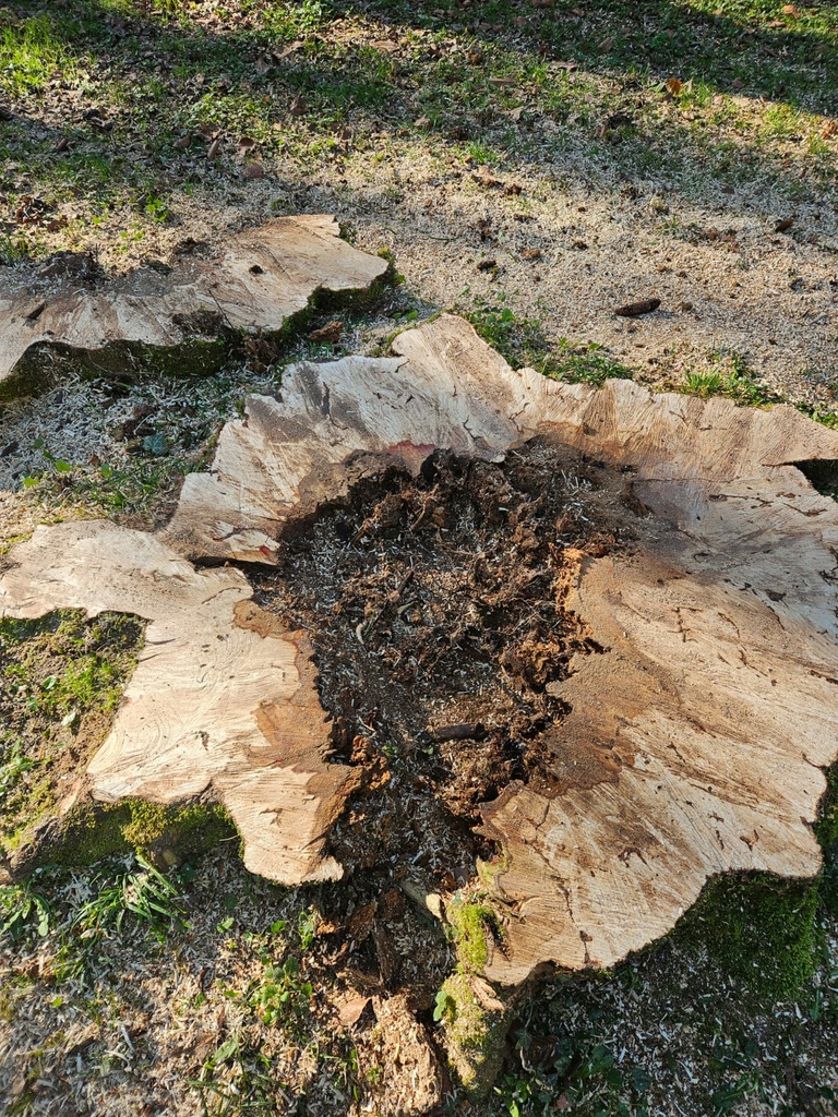 Ces arbres, dont certains étaient fortement dégradés, seront remplacés dans les meilleurs délais. Comme en témoignent les photos des arbres abattus dans les jardins du Prieuré, l’un d’eux abritait une charpentiere (un insecte xylophage) et présentait une cavité importante, le rendant particulièrement instable. Sa hauteur et son état de dégradation avancée en faisaient une menace sérieuse pour la sécurité publique, justifiant une intervention en urgence afin d’éviter tout accident.