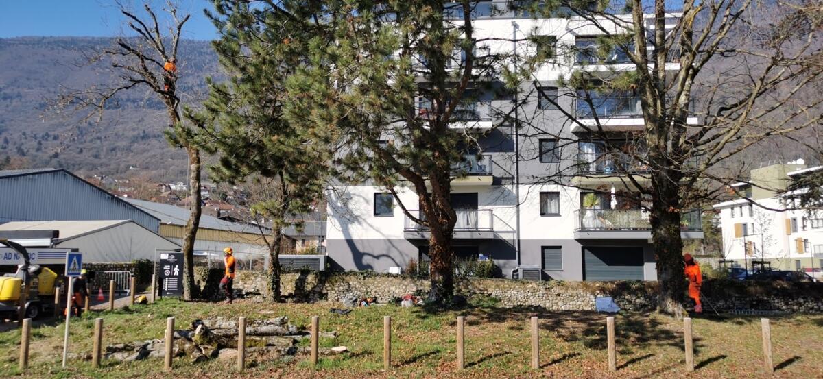 ✅ Sous la supervision de l’Office National des Forêts (ONF), quatre arbres situés à proximité de l’Orée du Lac (boulevard du Lac) et deux autres dans les jardins du Prieuré sont actuellement abattus.