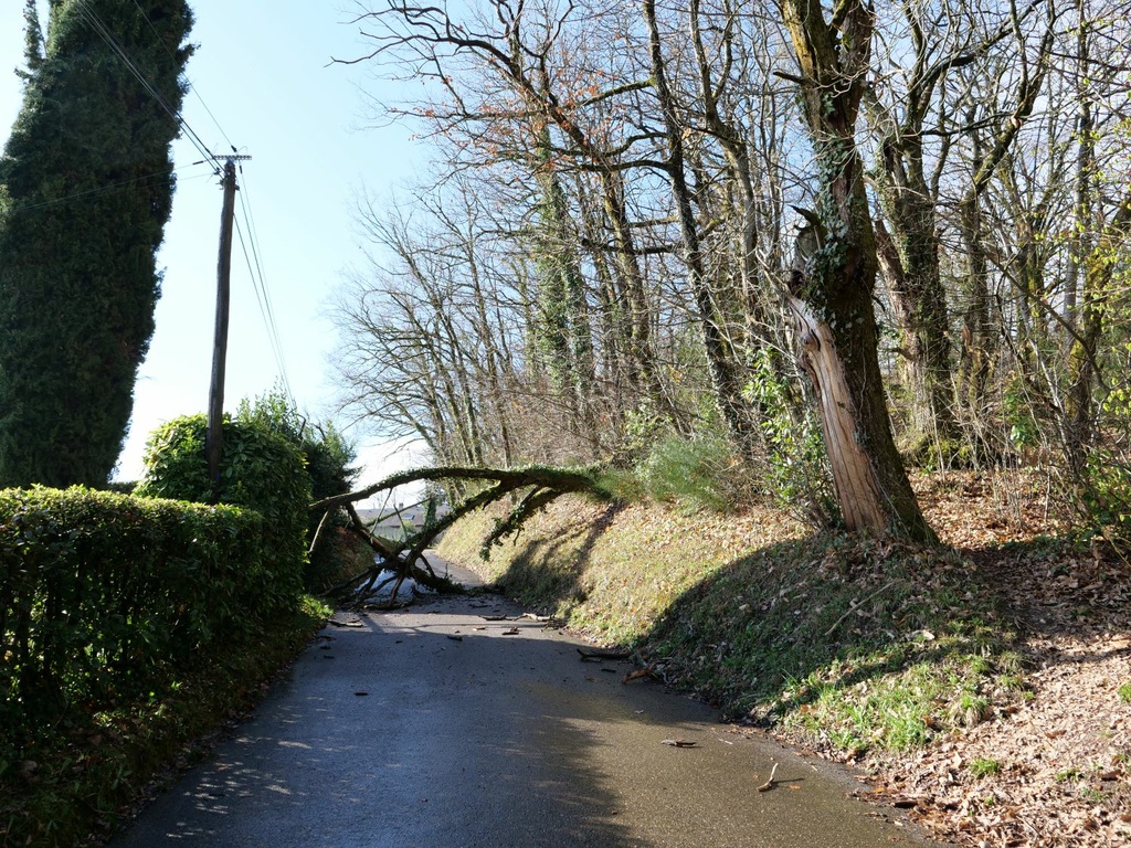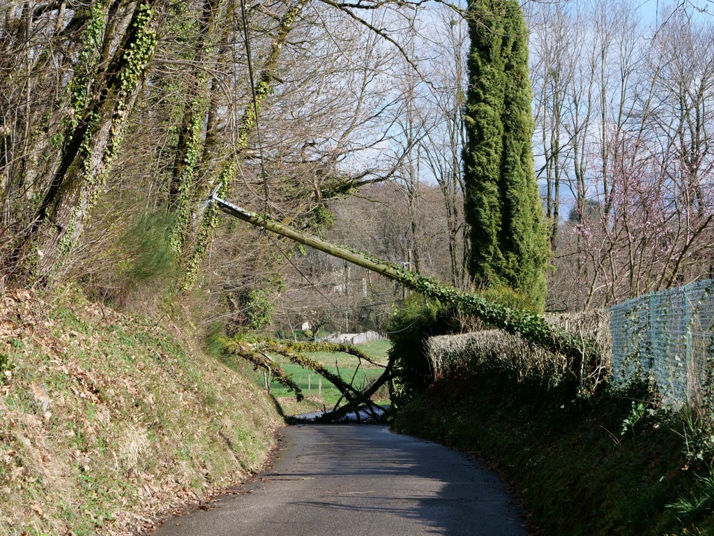🌧 Suite aux intempéries d’hier soir, un poteau téléphonique et un arbre sont tombés sur la route du Revet, rendant la circulation impossible.
