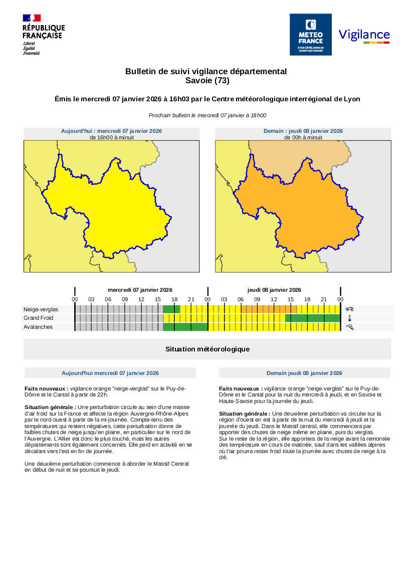 BULLETIN METEO FRANCE VIGILANCE ORANGE NEIGE-VERGLAS SAVOIE