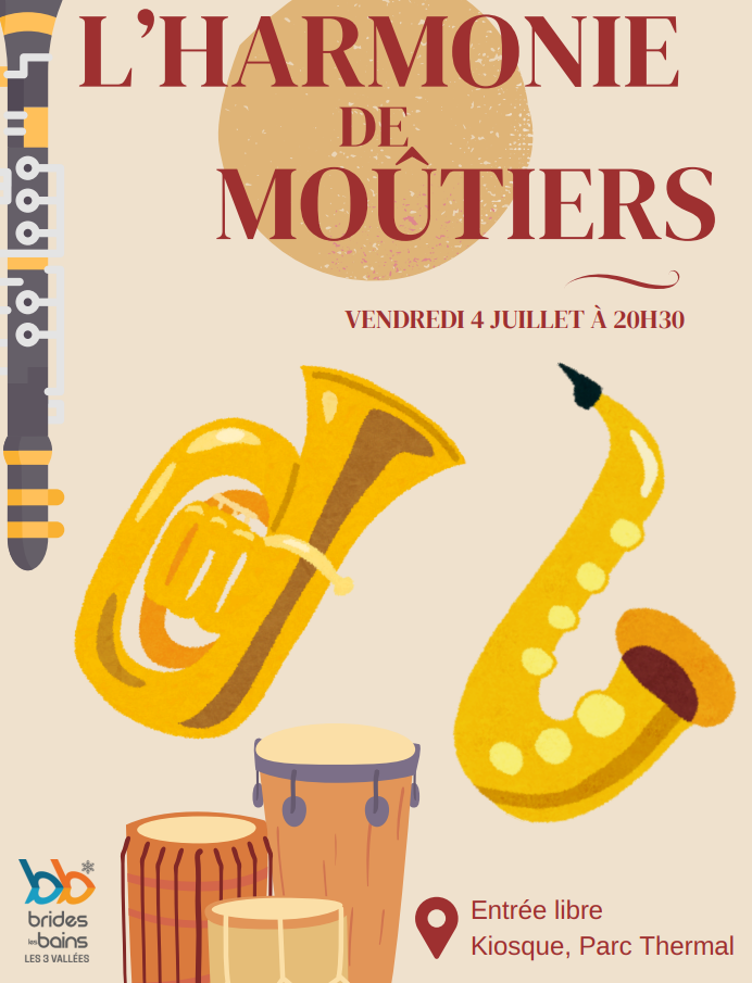 CONCERT HARMONIE DE MOUTIERS 01/07/2025 Vendredi 04 juillet 2025 à 20H30 au kiosque du parc Thermal Entrée libre