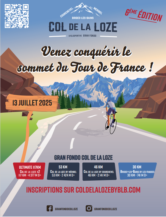 Les 12 et 13 juillet 2025, Brides-les-Bains organise de la 6ème édition de la cyclosportive « Gran Fond Col de la Loze ».