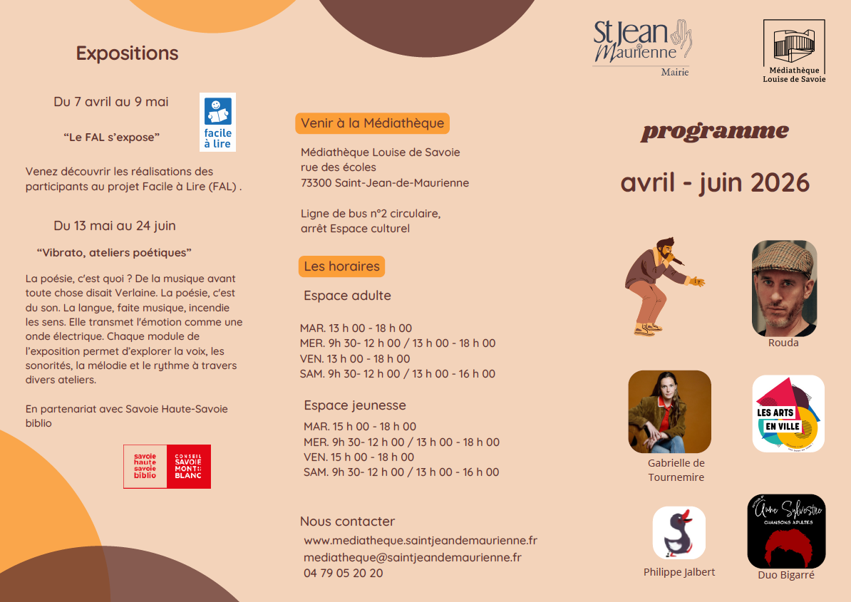 Programme Médiathèque Louise de Savoie - avril / juin 2026