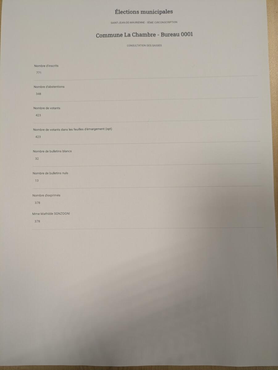 Votre mairie / Actualités / Résultats élections municipales La Chambre