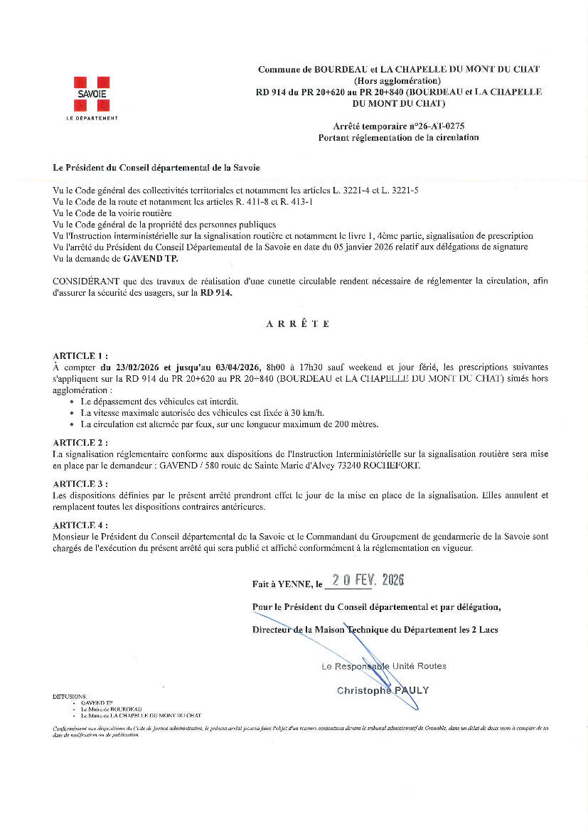 Le Département Vous Informe: Rd 914 Travaux 23/02/2026 Arrêté de circulation ( 26-AT-0275 ) sur la RD 914 hors agglomération pour des travaux de réalisation d'une cunette du 23 février au 03 avril 2026