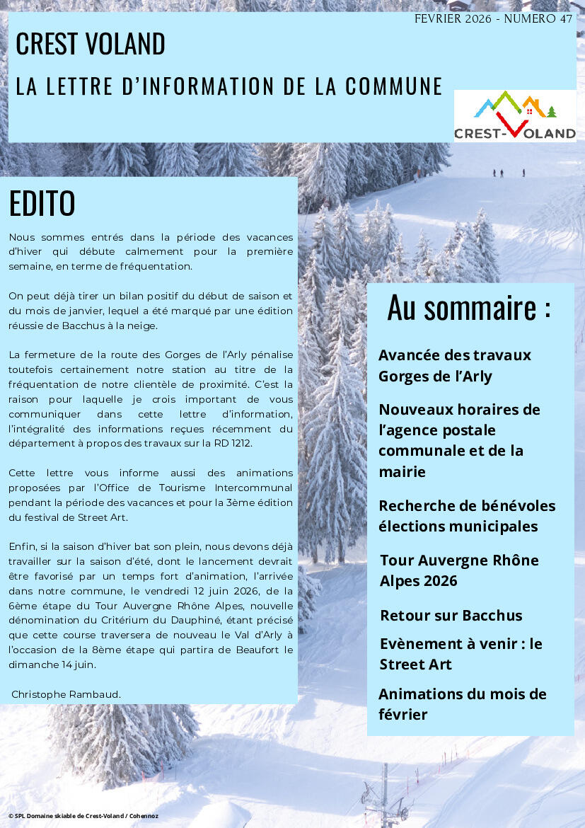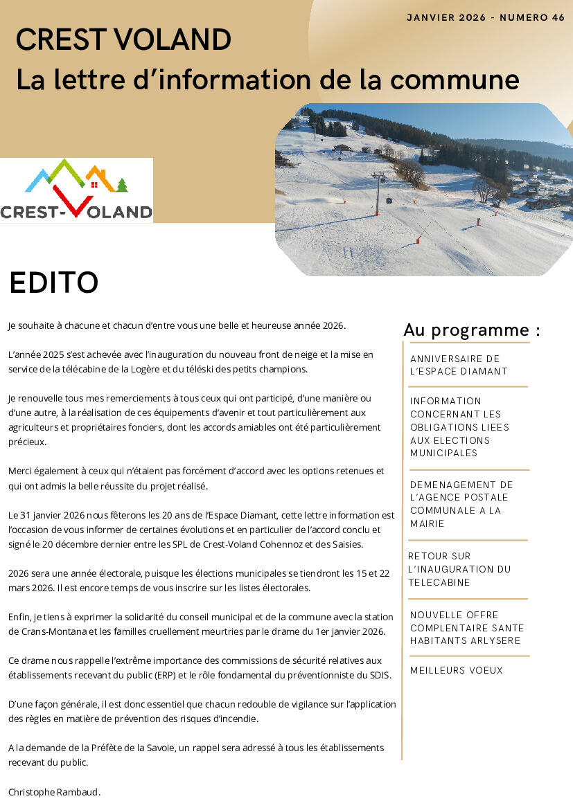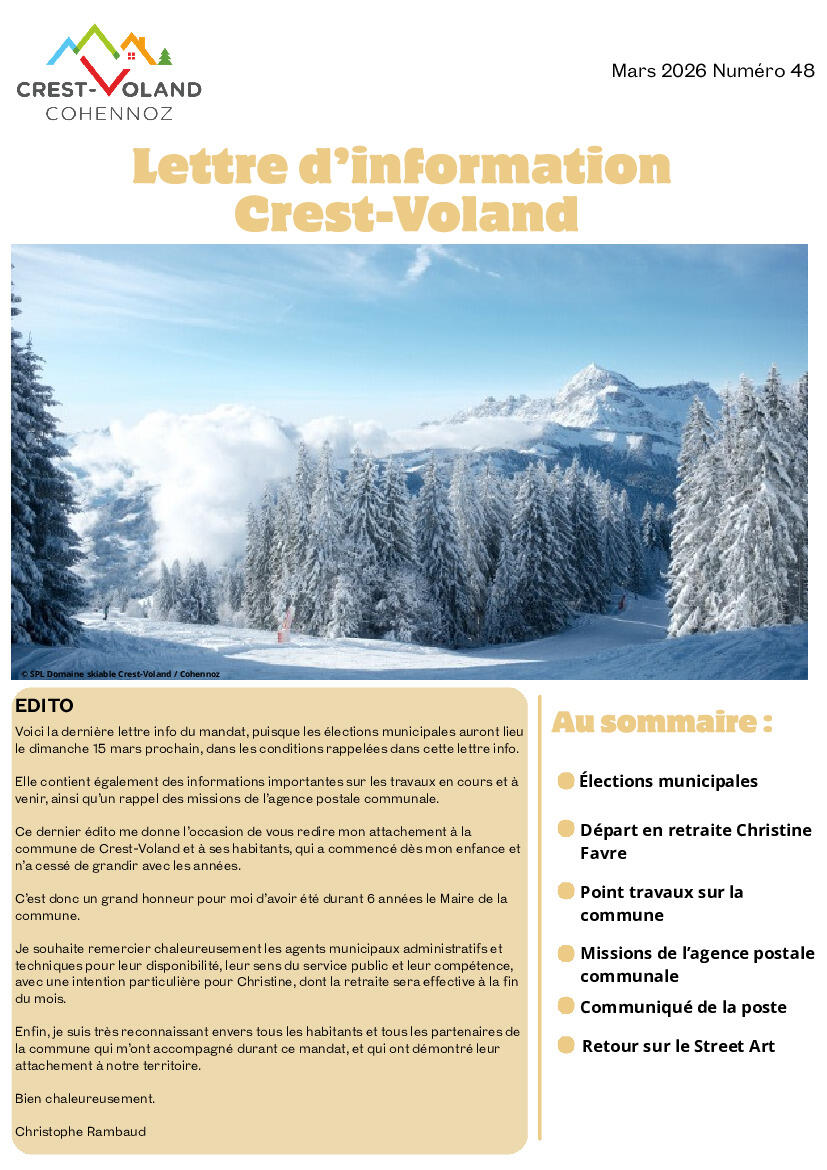 Toute l'actualité de Mairie de Crest-Voland