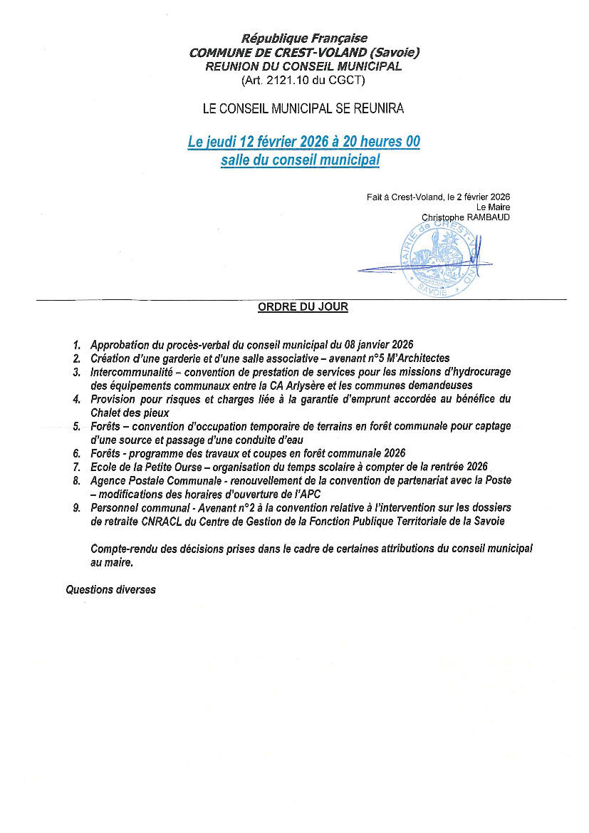Ordre du jour Conseil Municipal du 12.02.2026