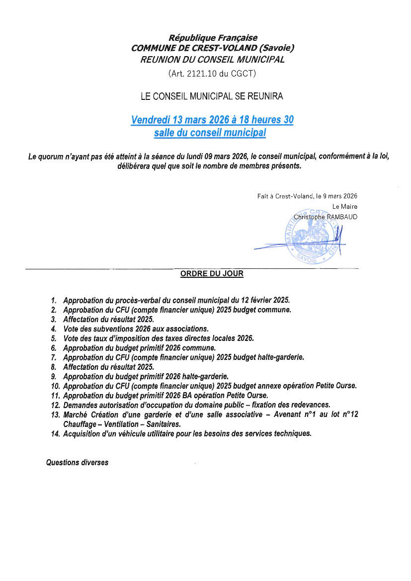 Ordre du jour Conseil Municipal du 13.03.2026