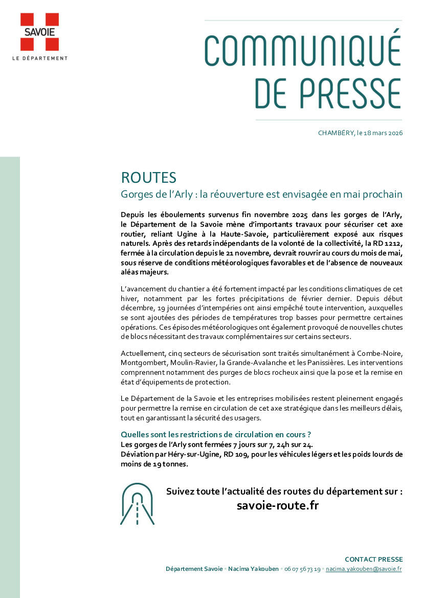 Gorges de l’Arly: la réouverture est envisagée en mai
