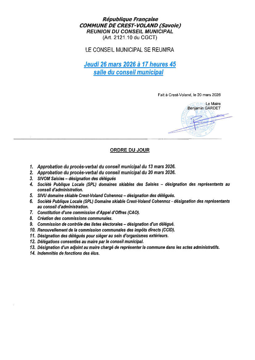 Ordre du jour Conseil Municipal du 26.03.2026