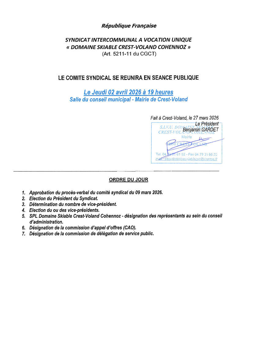 Ordre du jour comité syndical SIVU 02.04.2026