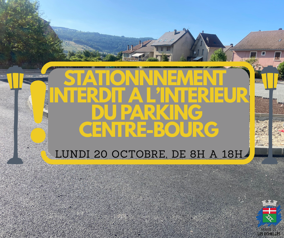 🚧 LUNDI 8 SEPTEMBRE : Fermeture du parking centre-bourg