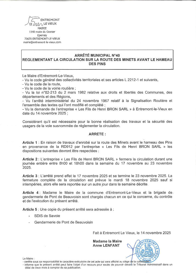 Route des Minets : fermeture pour travaux 18/11