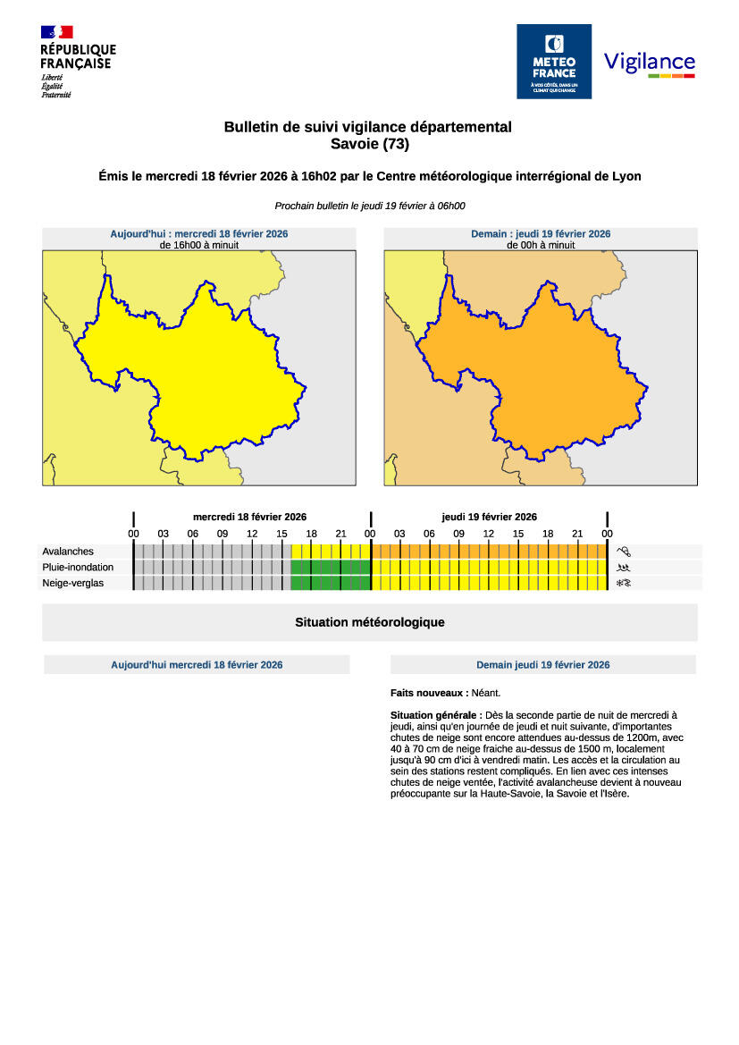 Bulletin de suivi vigilance départemental Savoie (73)