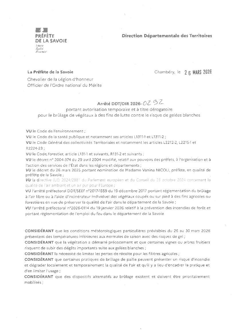 Arrêté - Lutte contre risque de gelées blanches