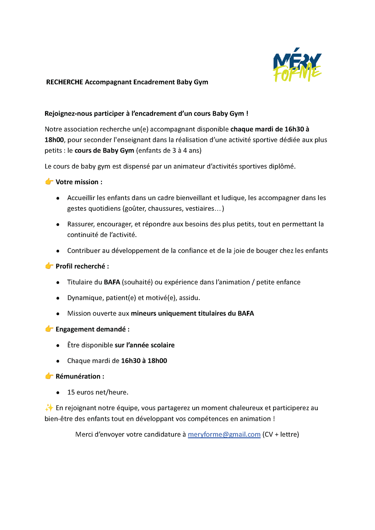ℹ️ Candidatures mail à meryforme@gmail.com