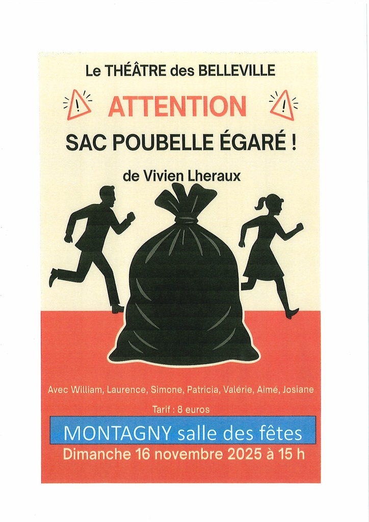 Spectacle « Sac poubelle égaré » 16/11/2025 12/11/2025 DIMANCHE 16 NOVEMBRE 2025 à 15h - salle des fêtes de Montagny