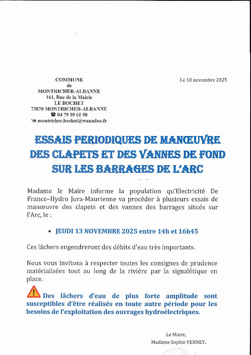 Essais périodiques de manoeuvre des Clapets sur l'Arc