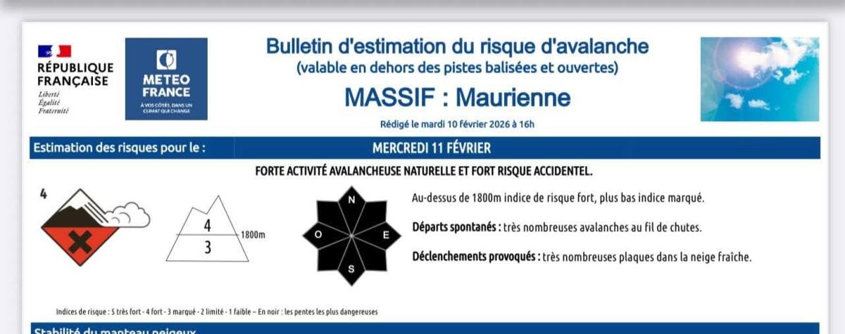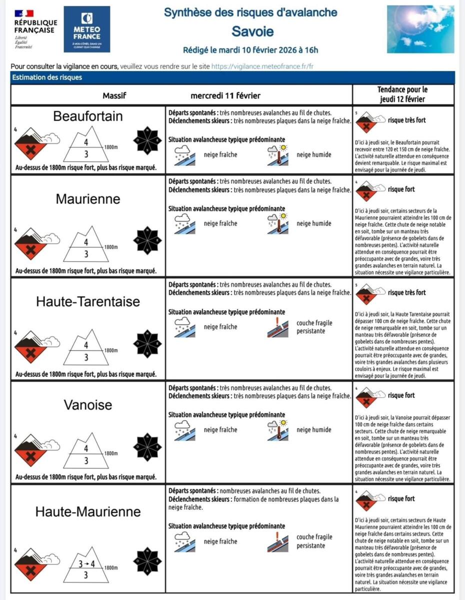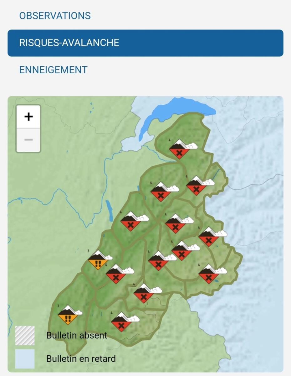 Tous les massifs de Savoie sont en risque maximal pour les pratiquants : 4/5.