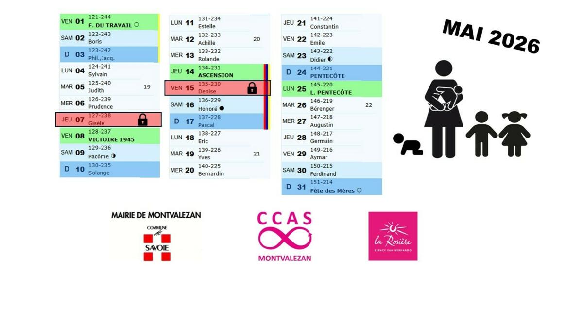 Votre mairie / Actualités / RAPPEL - Crèche Les P'tits Mouzets 👶 - le planning de mai