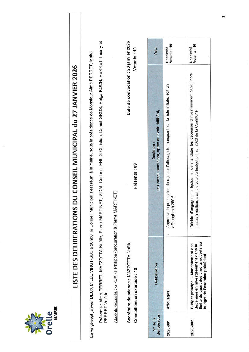 Conseil Municipal du 27 janvier 2026
