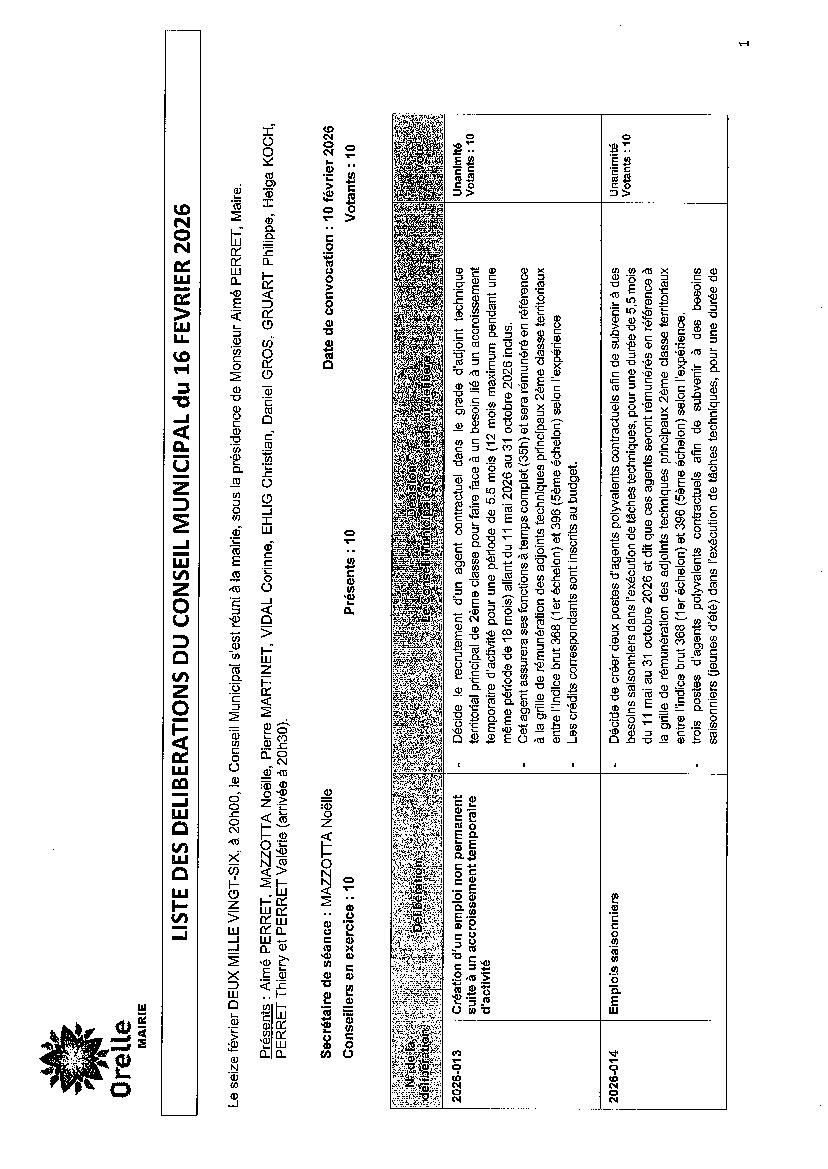 Conseil Municipal du 16 février 2026 17/02/2026 En PJ la liste des délibérations du Conseil Municipal du 16/02/2026.