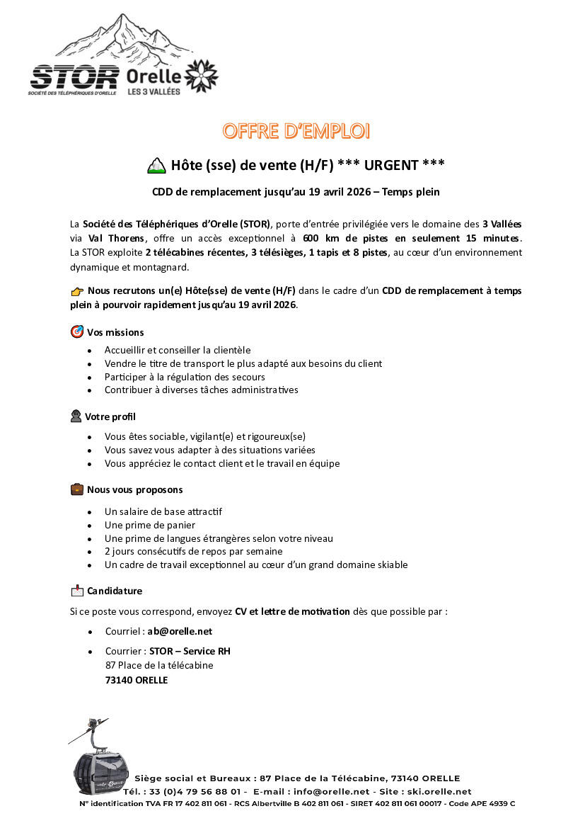 Ci-joint une offre d'emploi proposée par la STOR