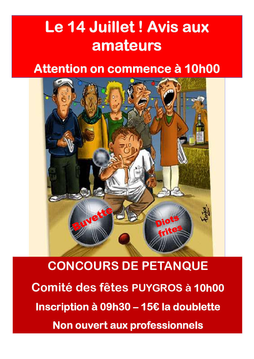 Le comité des fêtes de Puygros organise un concours de pétanque le 14 juillet. Source : Comité des fêtes de Puygros