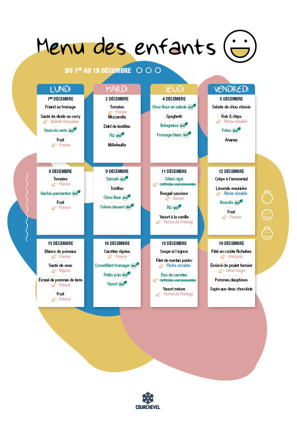 Menu des Enfants (du 30 septembre au 18 octobre 2024)