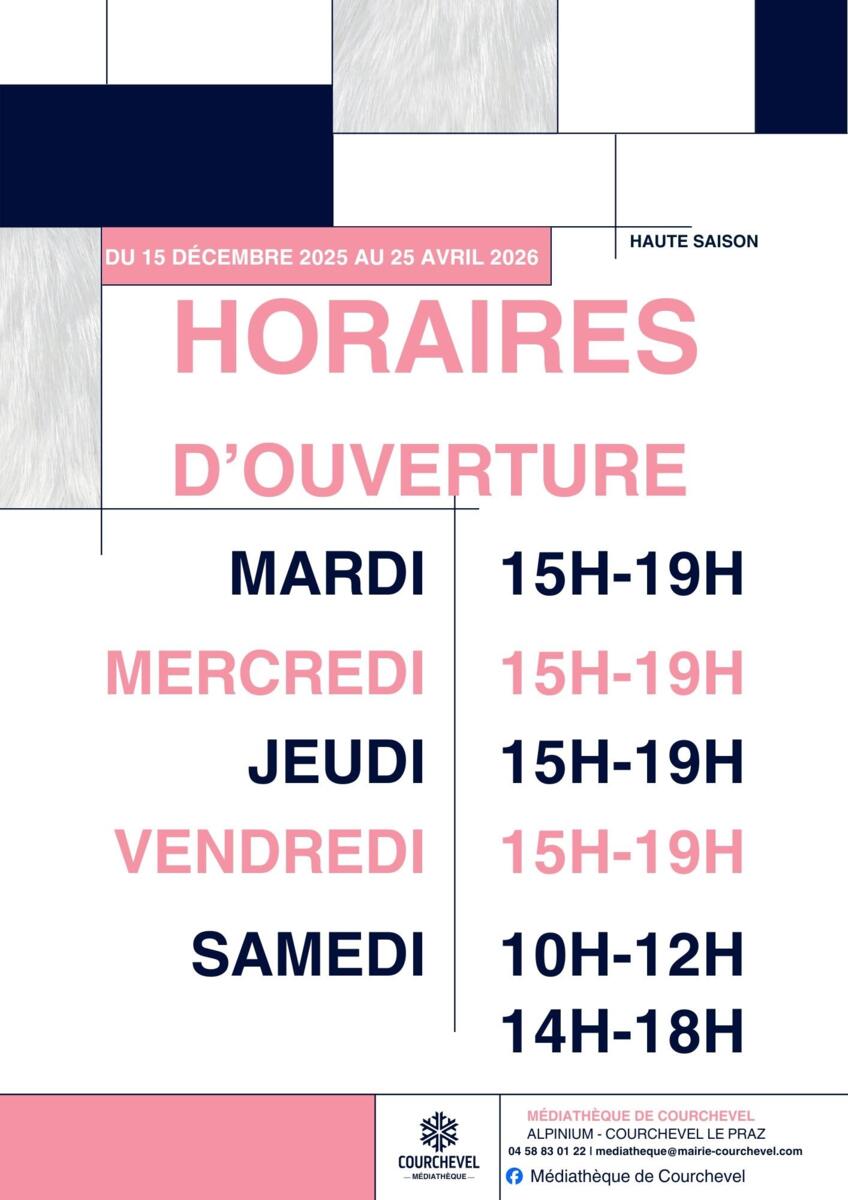 HORAIRES MÉDIATHÈQUE du 1er au 15 décembre 2025