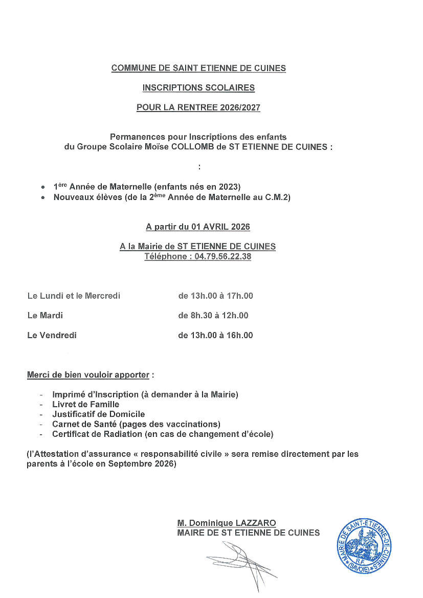 INSCRIPTIONS SCOLAIRES