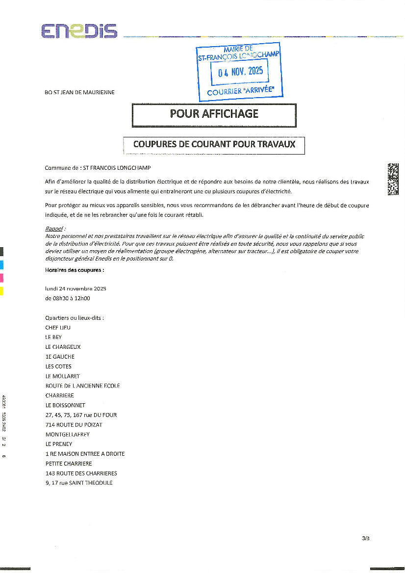 Coupure de courant pour travaux