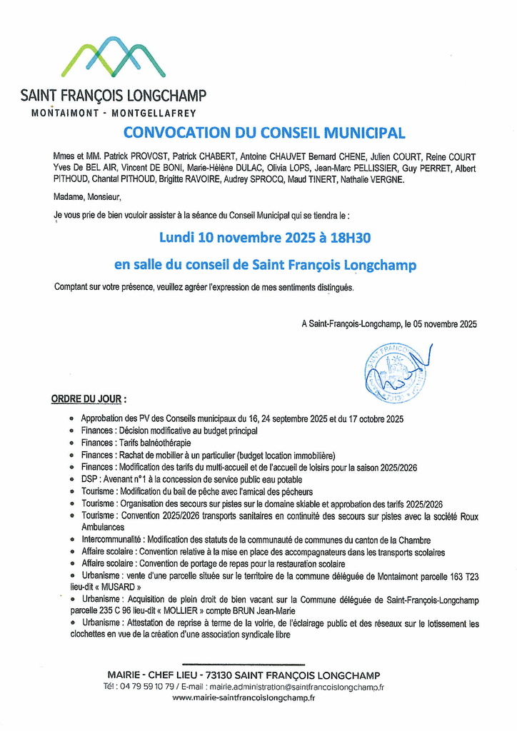 Votre mairie / Actualités / Conseil Municipal du 10 novembre 2025