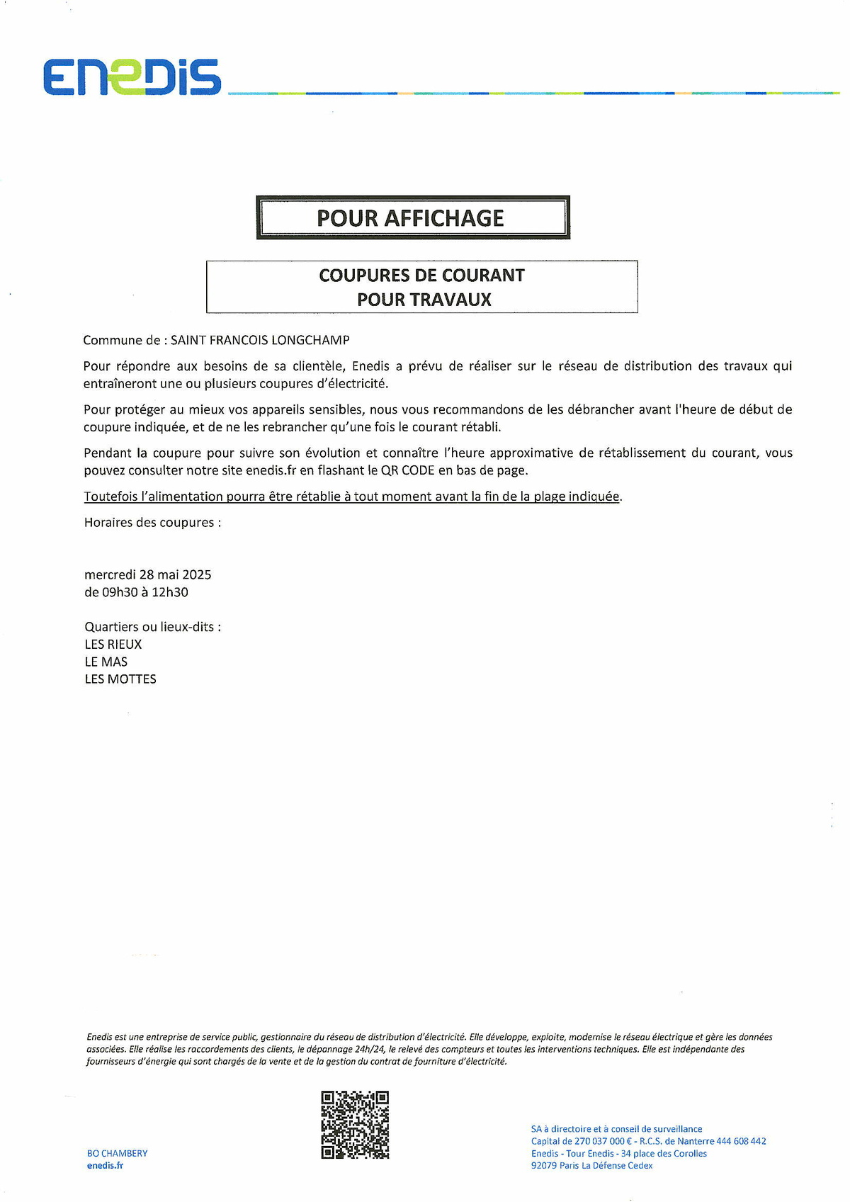 Coupure de courant MONTAIMONT 27/05/2025 POUR INFORMATION Source : Commune nouvelle de Saint François Longchamp