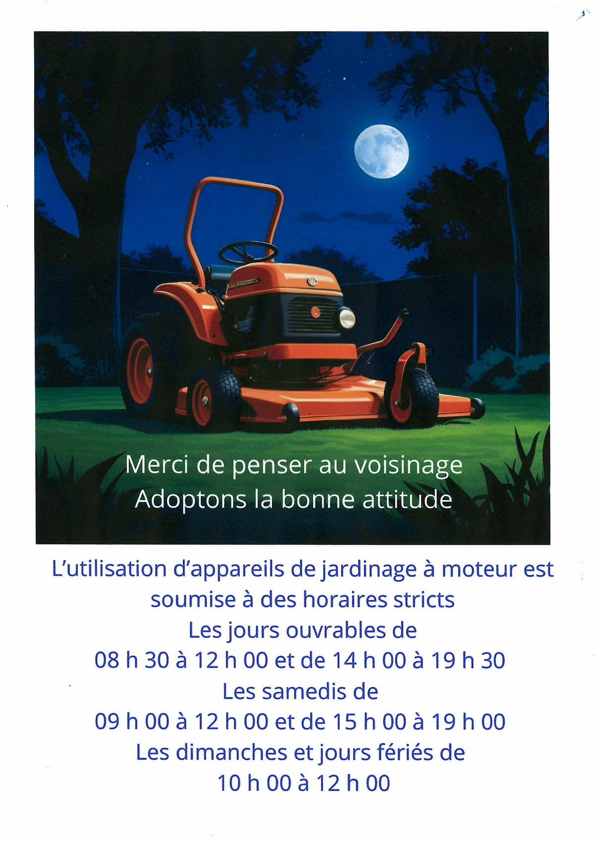 Nuisances sonores 06/10/2025 RAPPEL des horaires autorisés pour les travaux (jardinage, bricolage…) et autres bruits