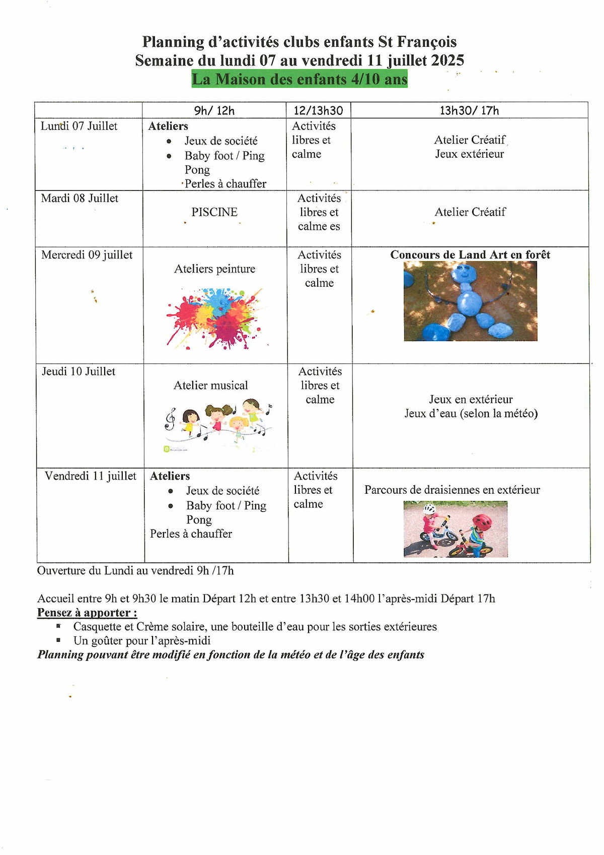 Pour la semaine du 7 au 11 juillet, une permanence d'inscription se tiendra le jeudi 3 juillet à la Maison des Enfants.