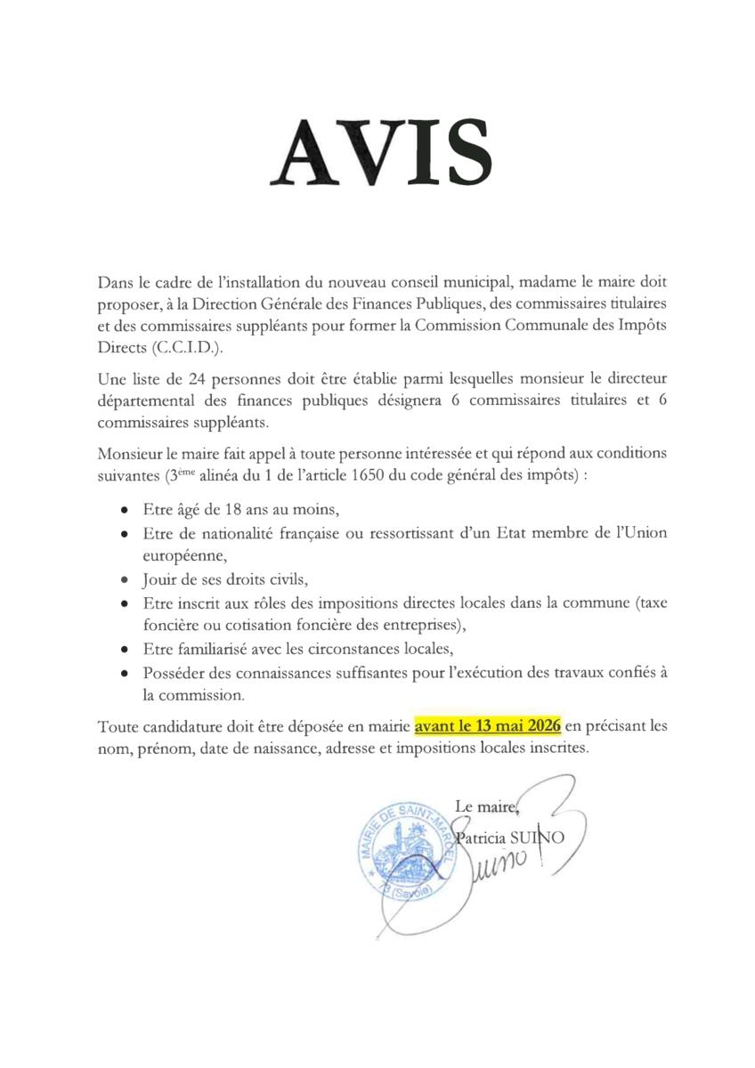 Avis Commission Communale des Impôts Directs