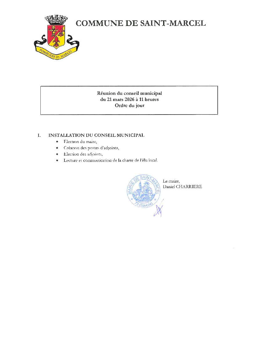 Conseil municipal le samedi 21 mars 2026 à 11 heures