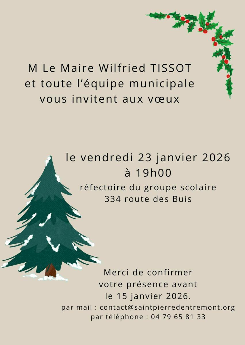 M Le Maire TISSOT Wilfried et toute l'équipe municipale vous invitent aux vœux.