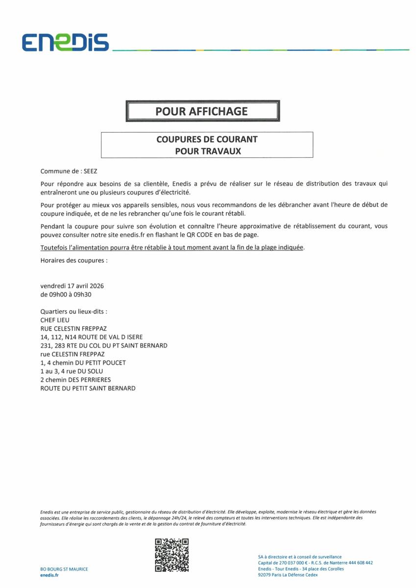 Coupure d'électricité le 17/04 de 9h à 9h30 ⚡