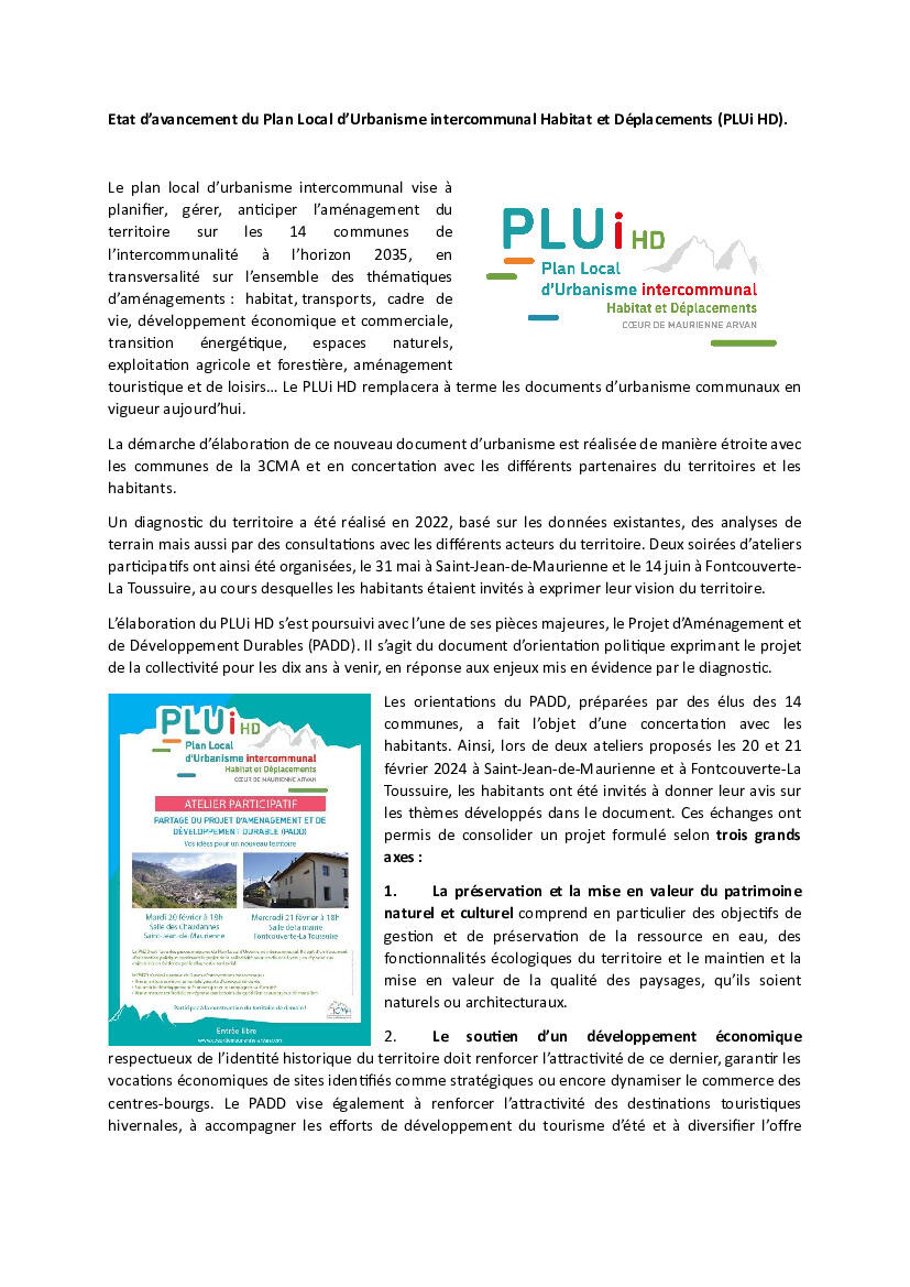 ETAT D'AVANCEMENT DU PLUi HD