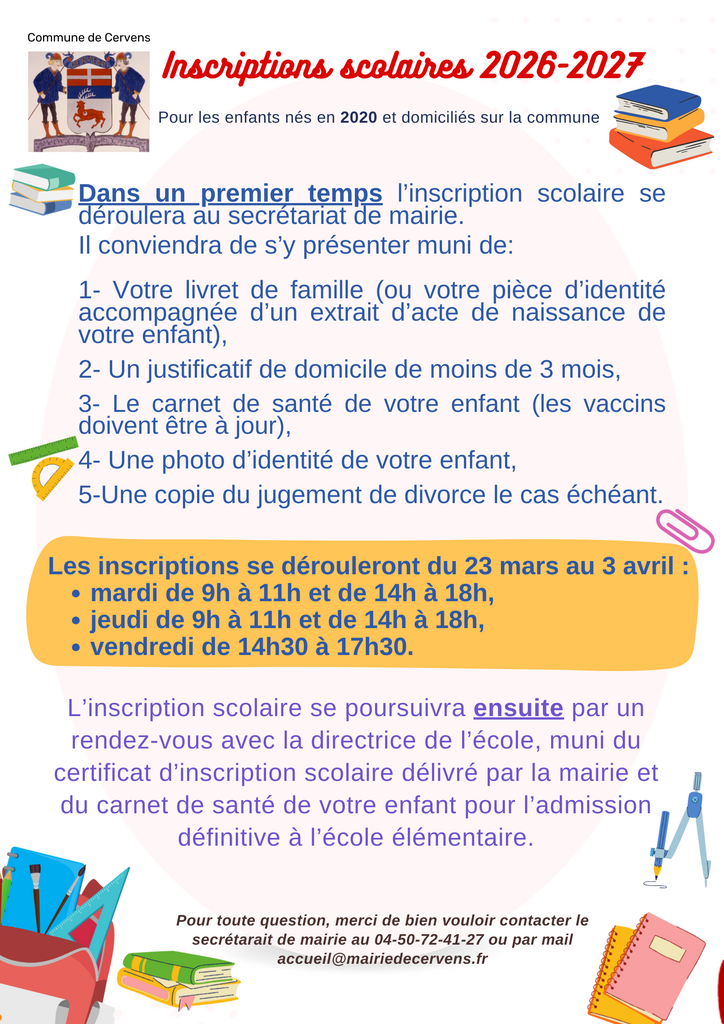 / Inscriptions école élémentaire 2026-2027