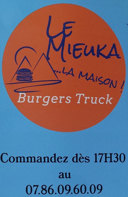 Nous vous rappelons la présence du "Mieuka" pour des déguster des burgers 🍔. Présents les mercredis en fin de journée sur le parking à côté du stade de l'école.