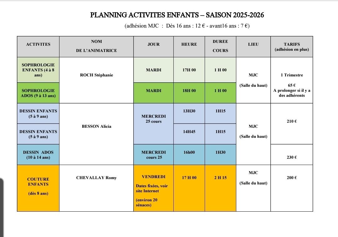 Accueil / Actualités / Planning des activités de la mjc de champanges
