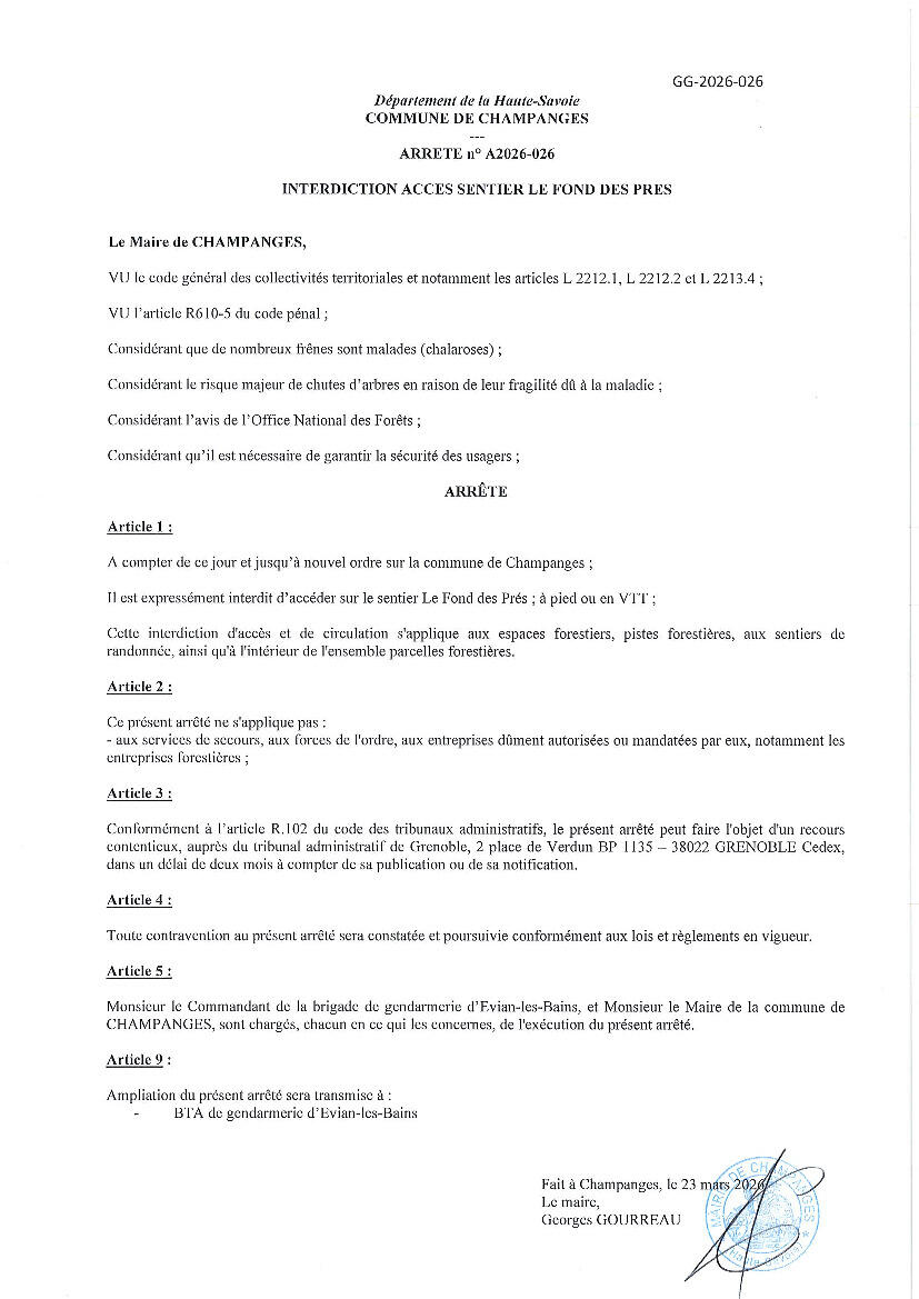 INTERDICTION D'ACCÈS SENTIER LE FOND DES PRÉS
