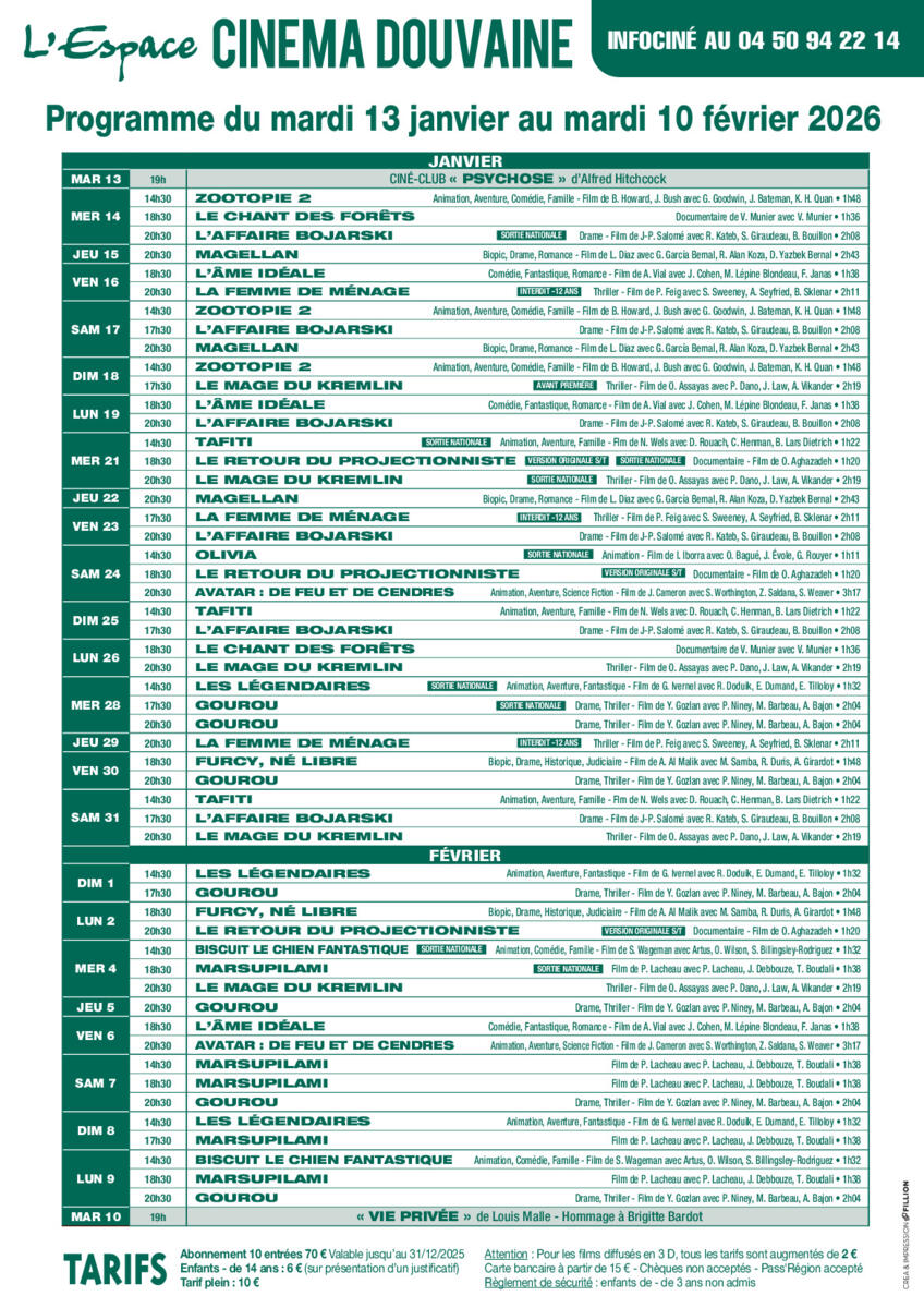 Votre programme de l'Espace Cinéma du mois de janvier 2026